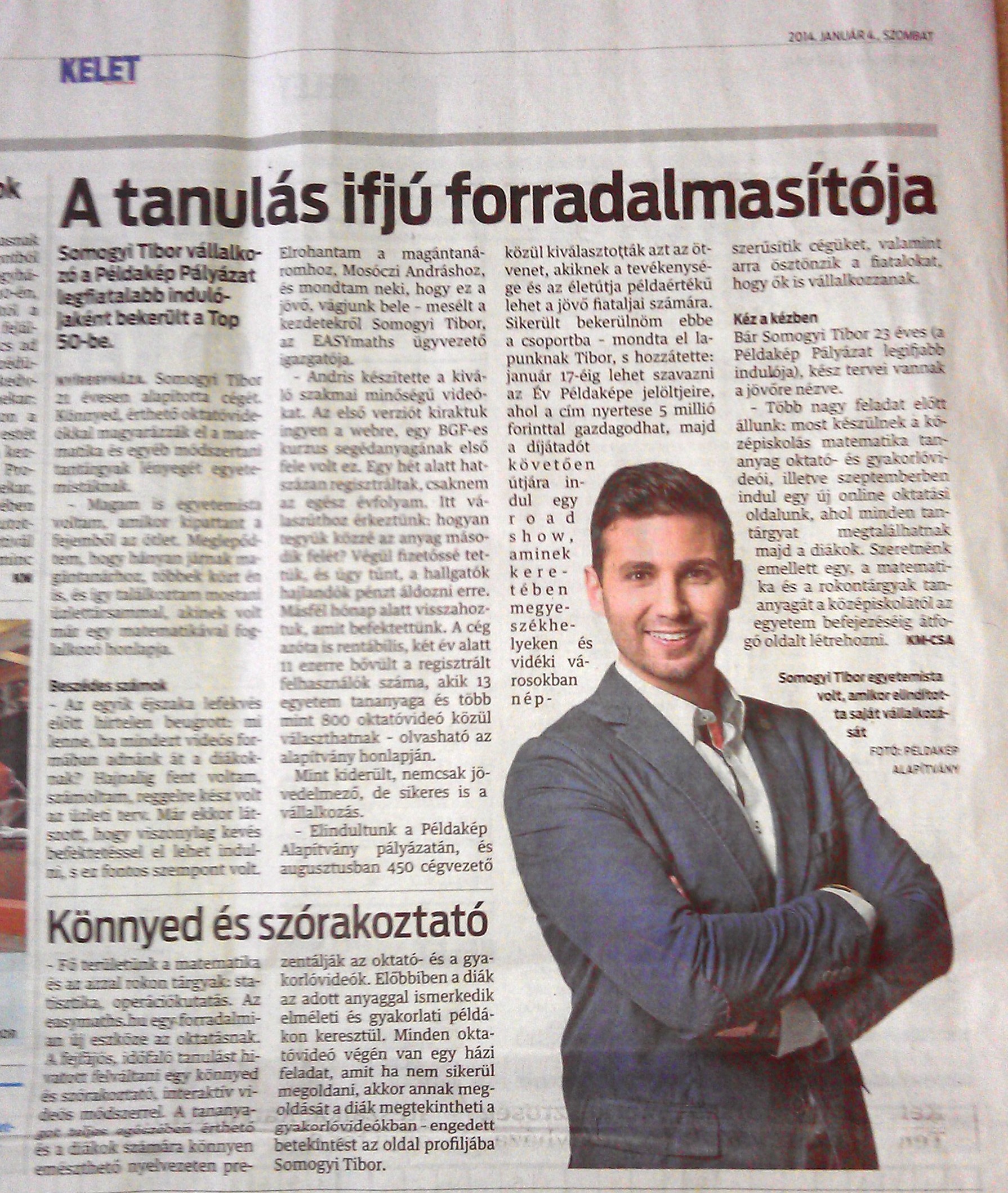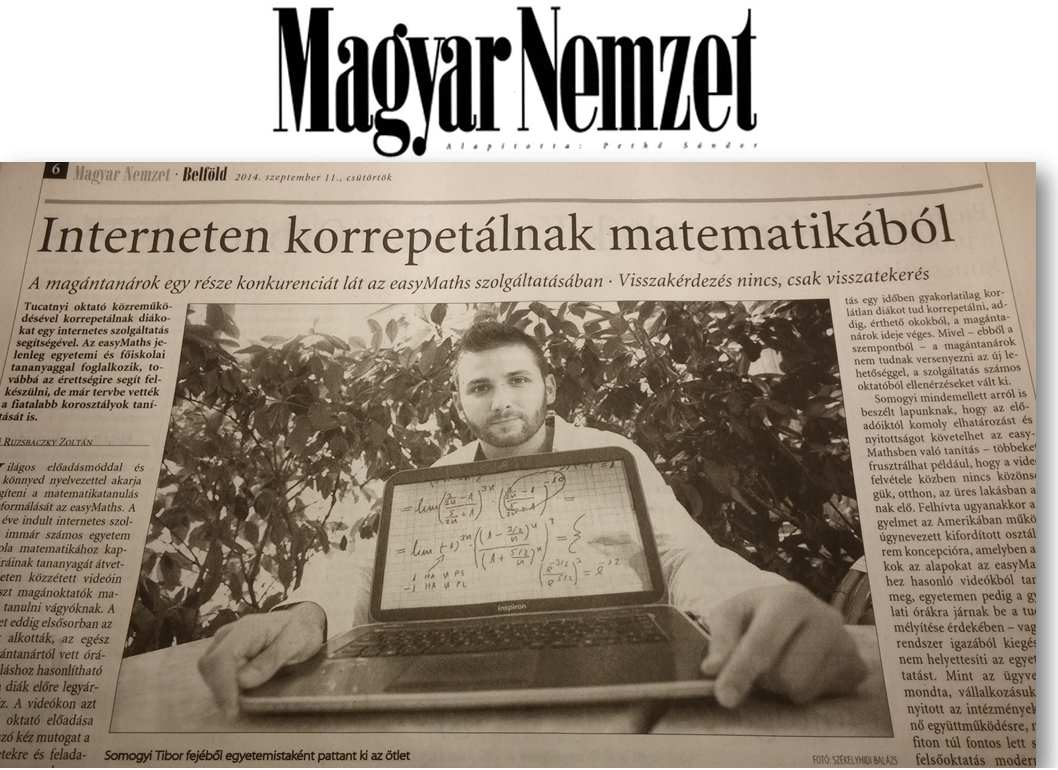 Magyar Nemzet - Interneten korrepetálnak matematikából - 2014.09.11-ei szám